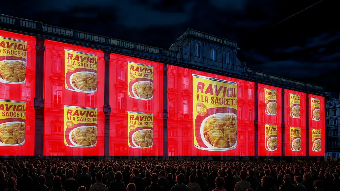 Plusieurs œuvres qui seront présentées rendent hommage à des symboles lyonnais, à l’image de celle qui sera installée sur la place des Terreaux : Le lundi c’est raviolis ! Les projections sur les façades du musée des Beaux-Arts et de l’hôtel de Ville proposeront une plongée dans la gastronomie, quoi de plus à propos dans une ville fière de sa tradition culinaire. Un voyage pop-culinaire coloré et dansant conçu par le collectif espagnol Tigrelab. Sept tableaux pour sept menus, un pour chaque jour de la semaine.