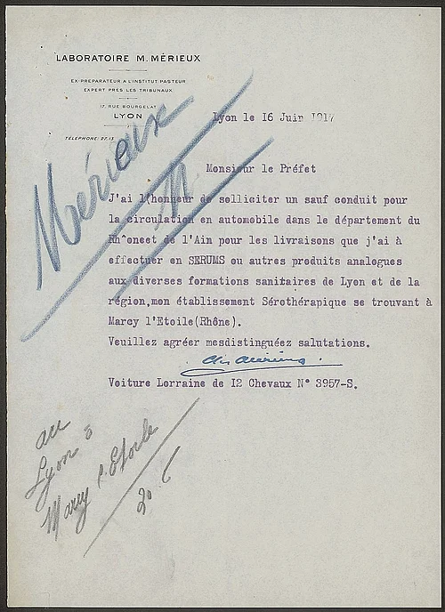 De même pendant la Seconde guerre mondiale, l’Institut Mérieux a été sollicité pour fabriquer un fortifiant pour les enfants souffrant de malnutrition à partir de sang de bœuf. Tout cela a été permis grâce à l’Institut Mérieux qui avait installé un centre de sérum de bovidés aux abattoirs de Gerland. À travers cette histoire, on a des lettres poignantes de mères de famille qui remercient ou demande qu'on les aide.