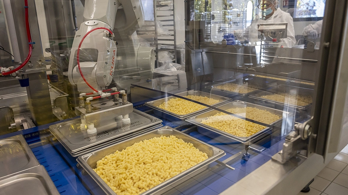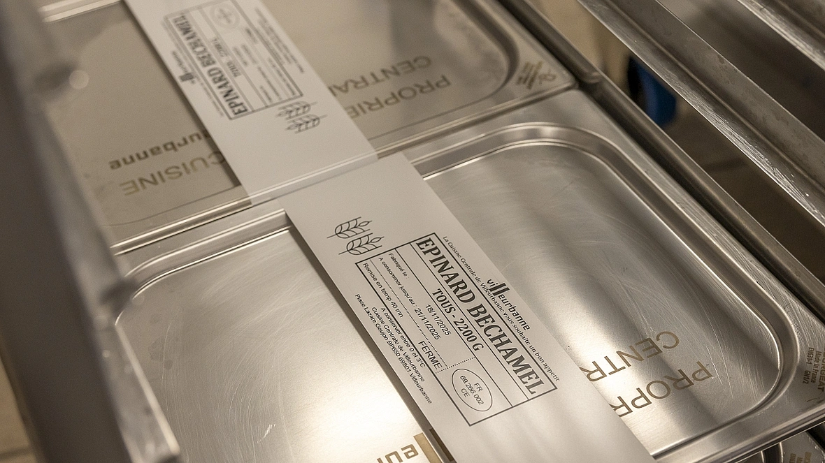Il est six heures passées de quelques minutes et les salariés de la cuisine centrale sont déjà derrière les fourneaux. Plus de 9 000 repas à préparer chaque jour, pour 45 établissements : les écoles, des crèches et la cantine de la Ville. Ici, près de 58 % des produits sont sous signe de qualité — AOC, AOP, Label Rouge — dont 30 % de bios.