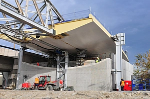 Les 1 600 tonnes de la charpente métallique, assemblées sur place, ont permis de guider le tablier à la forme légèrement arrondie pour atteindre l’autre rive à l’été 2025.