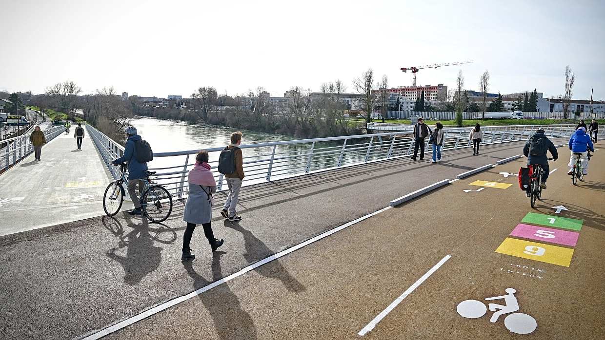 Des deux côtés du pont, des rampes permettent de connecter les quais hauts aux quais bas et facilitent l’accès des cyclistes et promeneurs à la ViaRhôna, aux Voies lyonnaises et aux promenades de l’Anneau bleu. Surtout, il permet de rapprocher deux territoires jusqu’ici séparés par le canal et le périphérique et faciliter les échanges entre les quartiers Saint-Jean et Croix-Luizet.