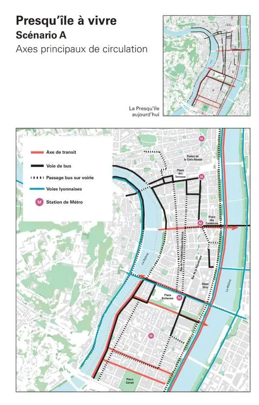 - créer une zone à trafic limité entre Bellecour et Cordeliers. L’idée : un ensemble de rues réservées aux piétons, aux cycles, aux bus, aux riverains, aux professionnels, aux livreurs… L’objectif : moins de voitures, sans oublier d’associer les personnes qui habitent ou travaillent dans cette zone. Par la suite, le projet envisage également la création de rues piétonnes, et un nouveau plan de circulation pour les voitures.