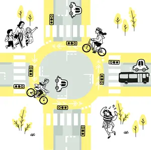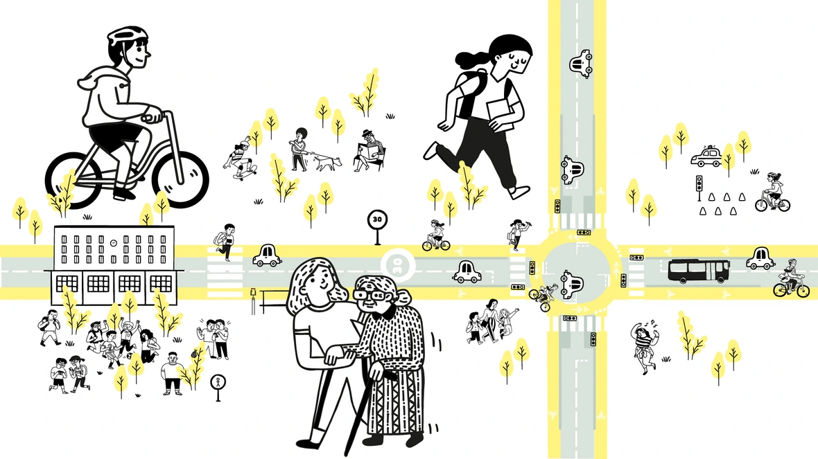 Dans la rue, les piétons sont les plus vulnérables. En élargissant les trottoirs, en installant des dispositifs de réduction de vitesse et davantage de passages piétons, cela leur apporte plus de sécurité.