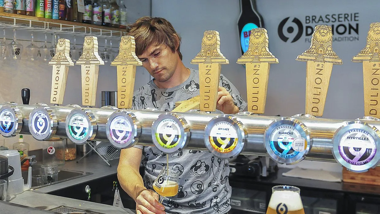Depuis deux ans, la brasserie Dulion a aussi son bar qui donne directement sur la voie verte de Caluire-et-Cuire pour valoriser sa production auprès d’un public local. L’espace permet d’avoir une vue directe sur l’outil de production.