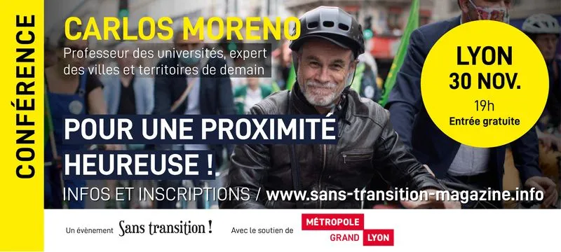 Venez écouter la conférence de Carlos Moreno, professeur à l'université Panthéon Sorbonne mercredi 30 novembre à 19h à l'hôtel de la Métropole. L'entrée est gratuite, sur inscription.
